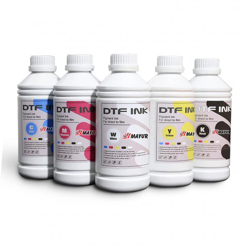 - DTF ink is specially designed pigment ink. White ink is a special component, which can be used to lay out the white base on the film to print colorful designs.This pigment ink formulation can reduce print head clogging and dryness. It can withstand countless washing cycles without fading.Suitable for 100% cotton and synthetic fabrics.Sublistar offer different colors DTF inks such as white, yellow, black, magenta, cyan, orange, green, and also fluorescence pink & fluorescence yellow.